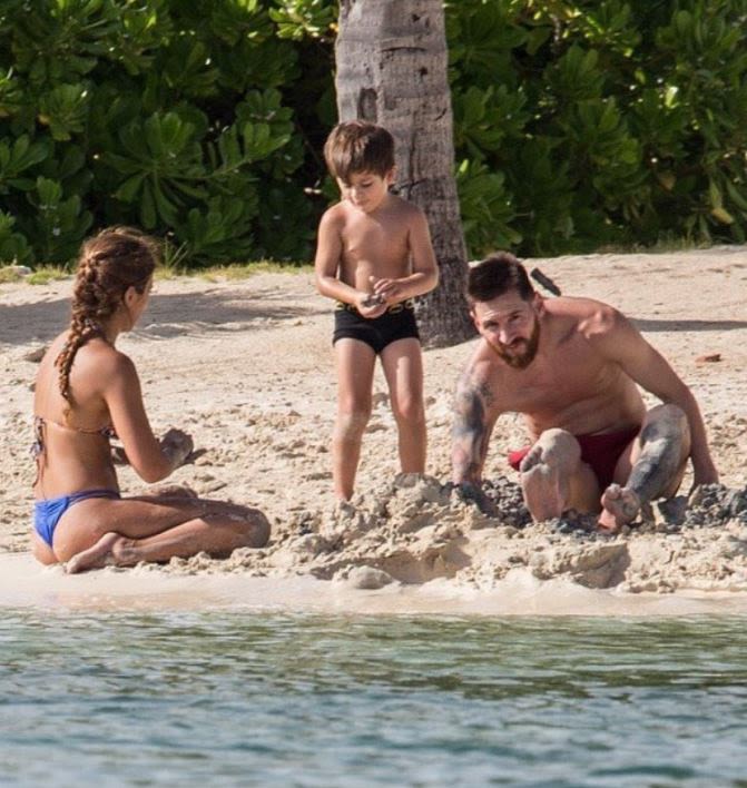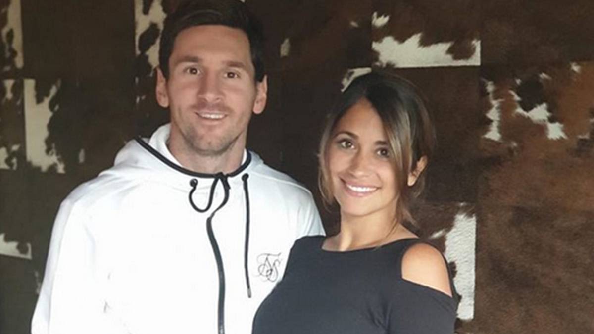 כוכב הכדורגל הארגנטינאי ליונל מסי (30) נתן את מותק הילדות שלו אנטונלה roccuzzo (29) הנהון.
